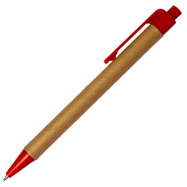 This eco-friendly promotional push-button pen is crafted from recycled cardboard and plastic parts. It features a generous print area for branding and comes with a black ink refill, making it a sustainable choice for promotional use. |
